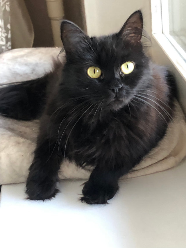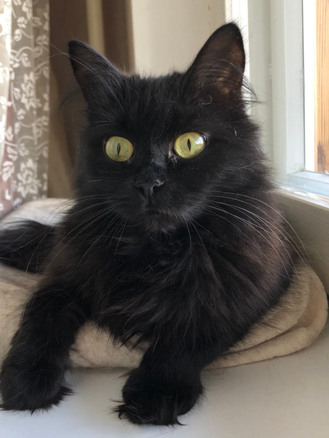 Если вам нужна красивая, сообразительная и не создающая трудностей кошка, она перед вами. Чикита необыкновенно хороша. Павлиний хвост, огромные желтые глаза, черная и шелковистая шерсть. Чикита несомненно умна. Она буквально считывает с губ слова, обращенные к ней, понимает все с полувзгляда. Чикита абсолютно беспроблемна. Кошка большая чистюля и аккуратистка, лоток «на отлично».