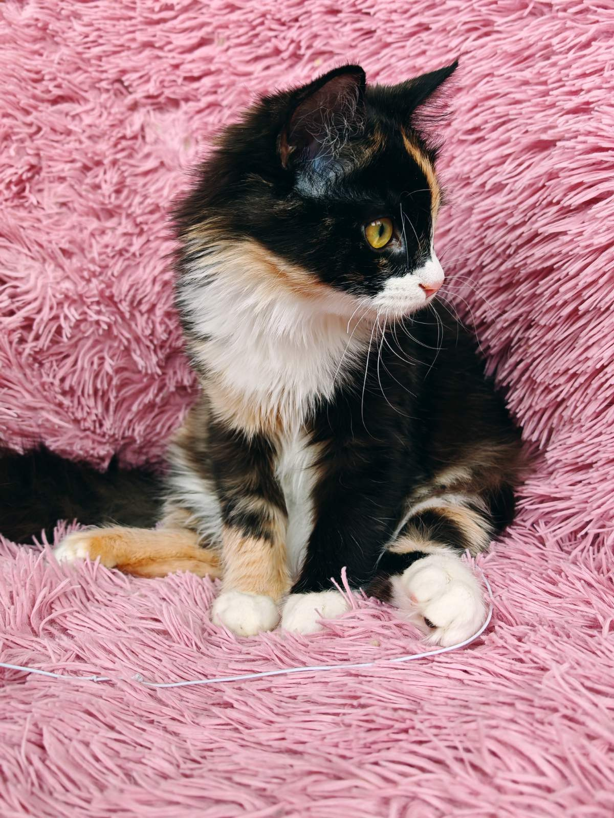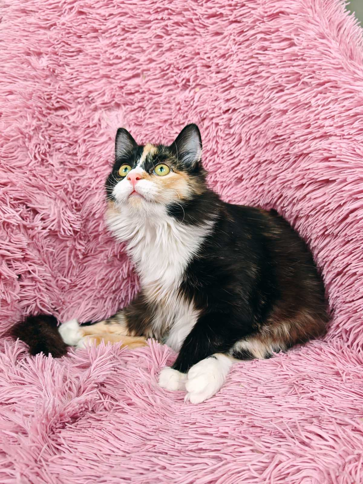 Ласковая мурчливая активная девочка-подросток в добрые руки. Кошечка активная, любопытная, детям школьного возраста будет хорошим другом и компаньоном во всех делах. Приучена к лотку и когтеточке, ладит с другими животными, ест сухой, влажный корм. Пушистая, имеет красивый розовый нос и очень длинный шикарный хвост.