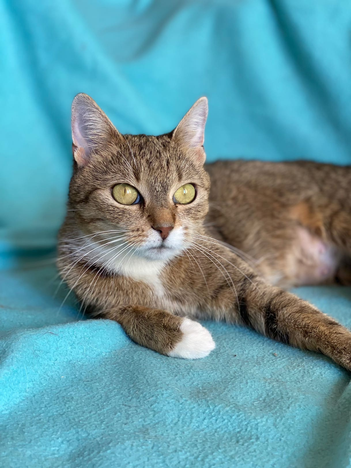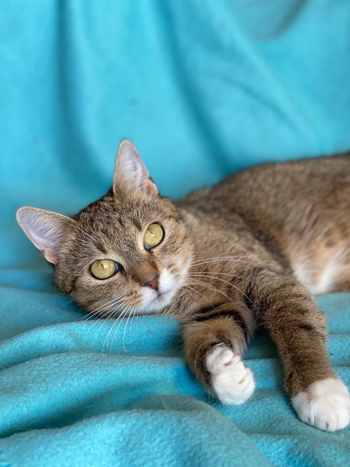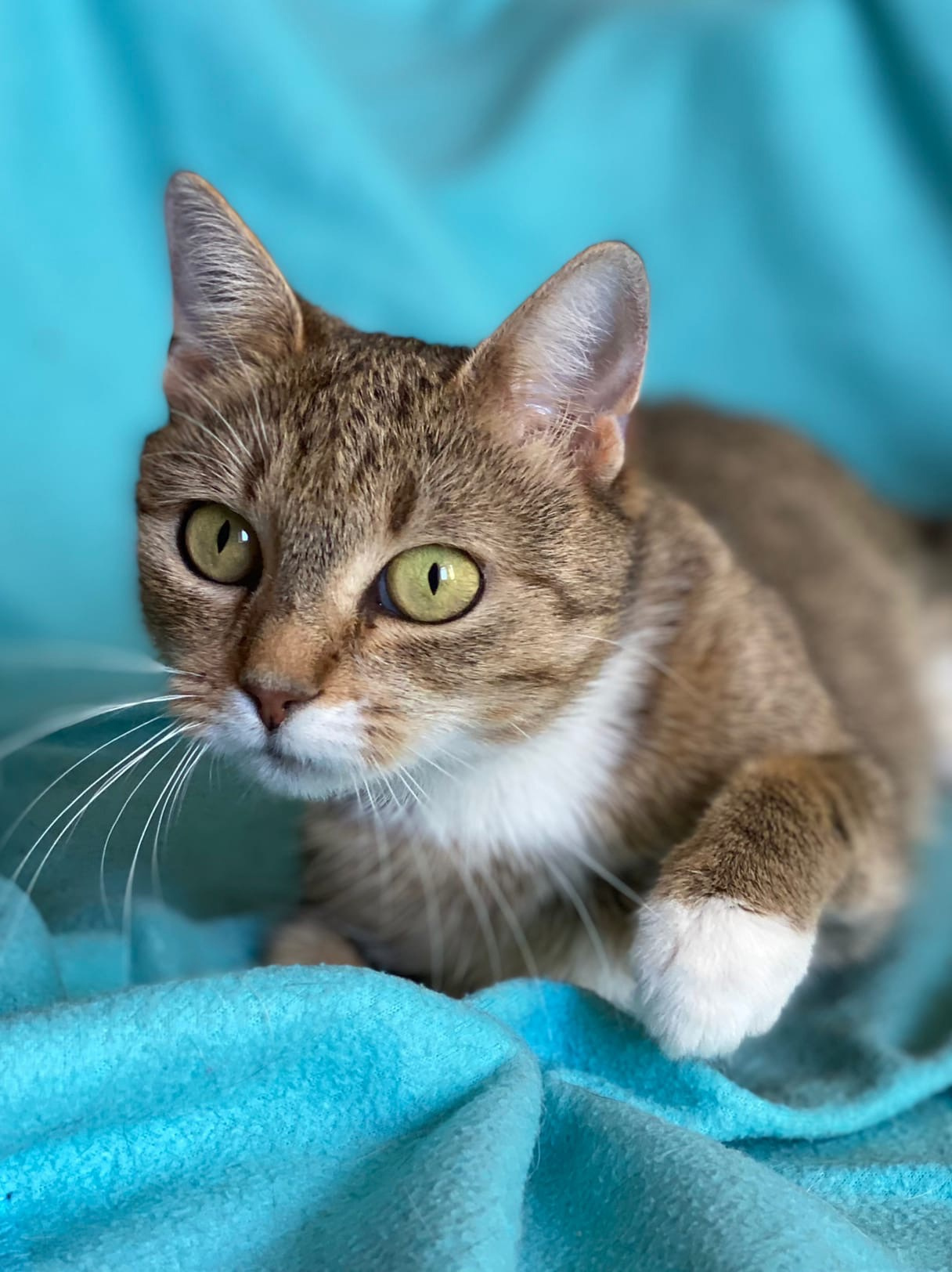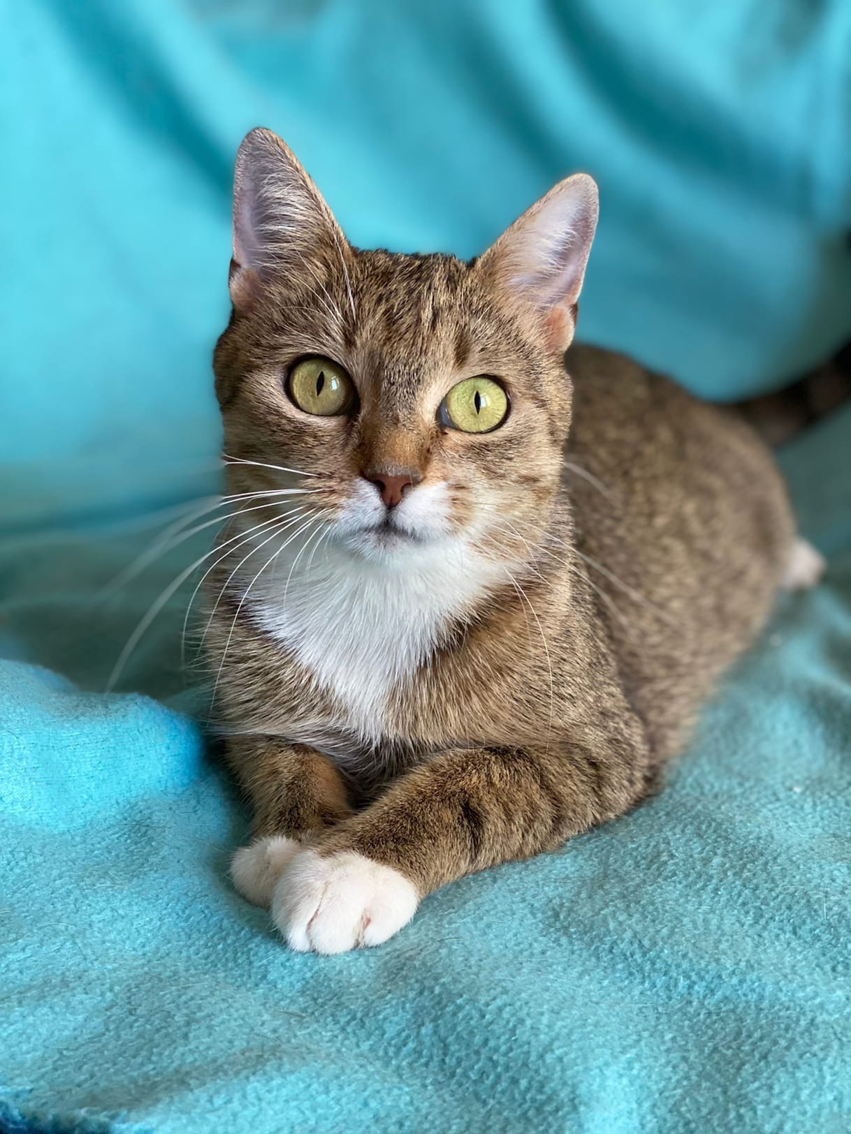 | Откуда поступило | Рассказ волонтёра: "В этот вечер накрапывал небольшой дождик и Татьяна, как обычно, пошла кормить дворовых котов. В кустах возле оживленной дороги услышала жалобное мяуканье и навстречу ей вышла кошечка с красивыми зелеными глазами, но сильно исхудавшая. Она с жадностью съела еду и смотрела на нее, жалобно прося еще. Покушав, она стала тереться о ноги и громко мурлыкать, заглядывать в глаза. На следующий день кошечка снова пришла покушать, и так продолжалось около недели. Покушав, кошечка просилась на руки, мурлыкала и очень не хотела отпускать Татьяну. В один из дней она и решила, что надо ее забирать с улицы, стерилизовать и искать ей дом". |